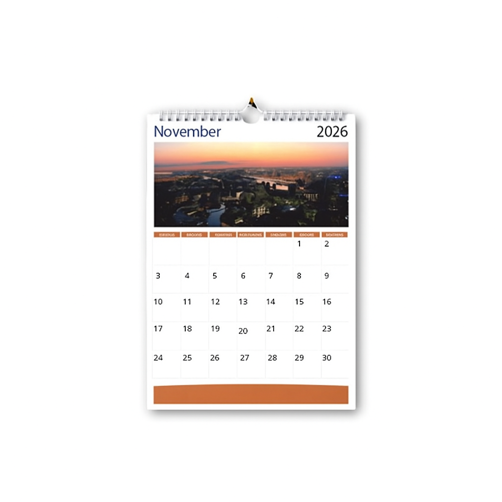 SPIRAL WALL CALENDAR A4 SIZE. 7 PAGES WITH FULL COLOR PRINTING ON TWO SIDES 200gr.