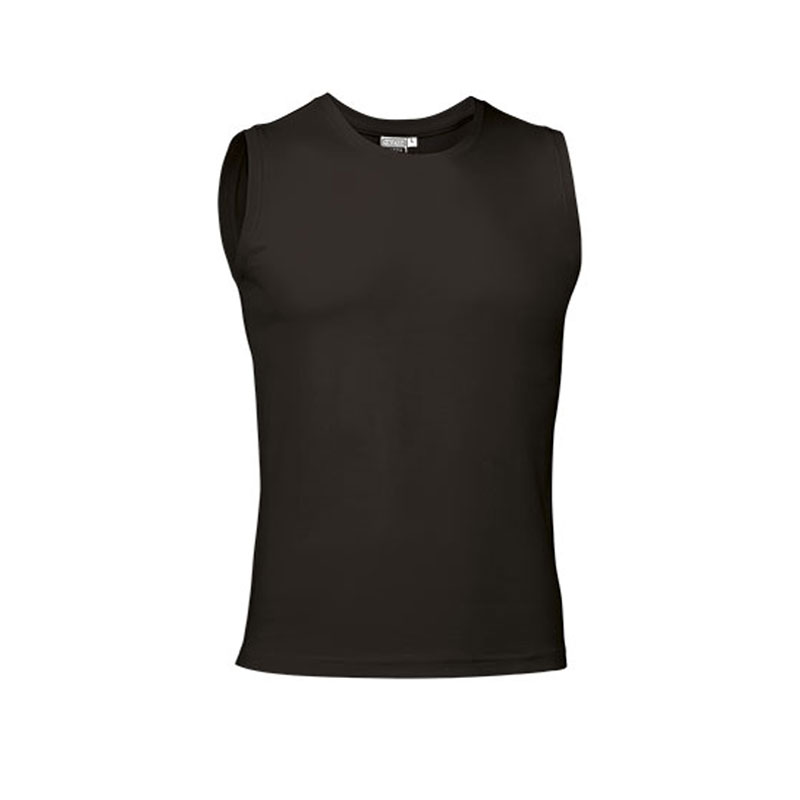 BLACK SLEEVELESS T-SHIRT WITH MODERN DESIGN