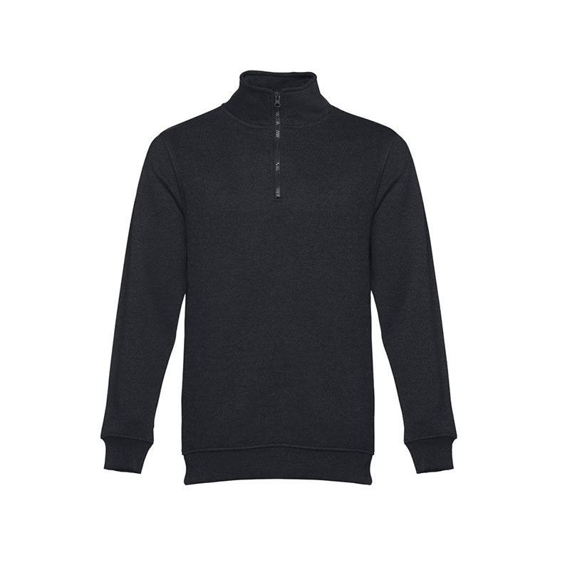 Sweatshirt (unisex) 50% cotton and 50% polyester (320 g/m²) with carded interior. Contains ribbon cuffs and waistband and 1/4 coloured zip. Winter.