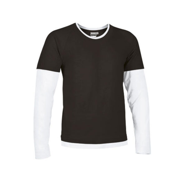 Fun two-tone t-shirt and long sleeves made of 100% ring-spun cotton plain knit fabric. Double sleeves, neck, and hem with a contrasting color. Round ribbed neckline and double stitching on the neckline, hem, and sleeves.