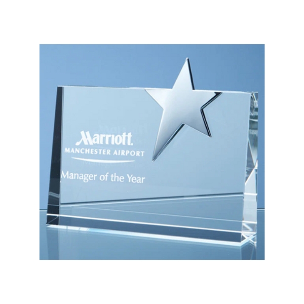 CRYSTAL HOR. RECT. WITH SILVER STAR 20CM