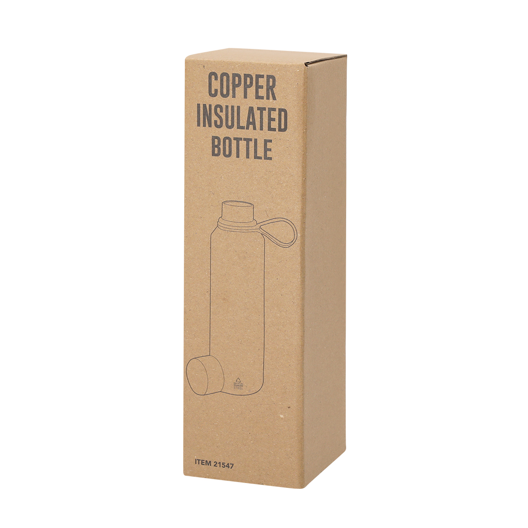 Thermal bottle with a capacity of 630 ml, made of Recycled Stainless Steel with double wall. Includes matching silicone handle. BPA-free. With a Recycled Stainless Steel label.