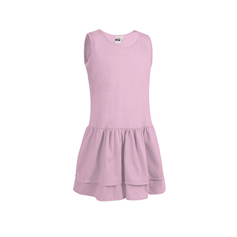 The girl’s dress has a double ruffle, made with plain knit fabric. With an elastic waistband for a better fit. Very funny dress.