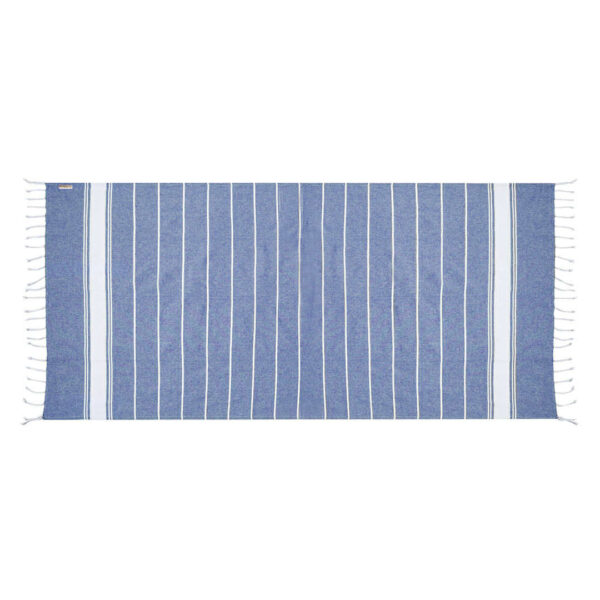 Soft pareo towel in 100% recycled cotton 180g/m2. Available in a wide range of two-tone colours. Recycled cotton side label and presented in an individual bag.