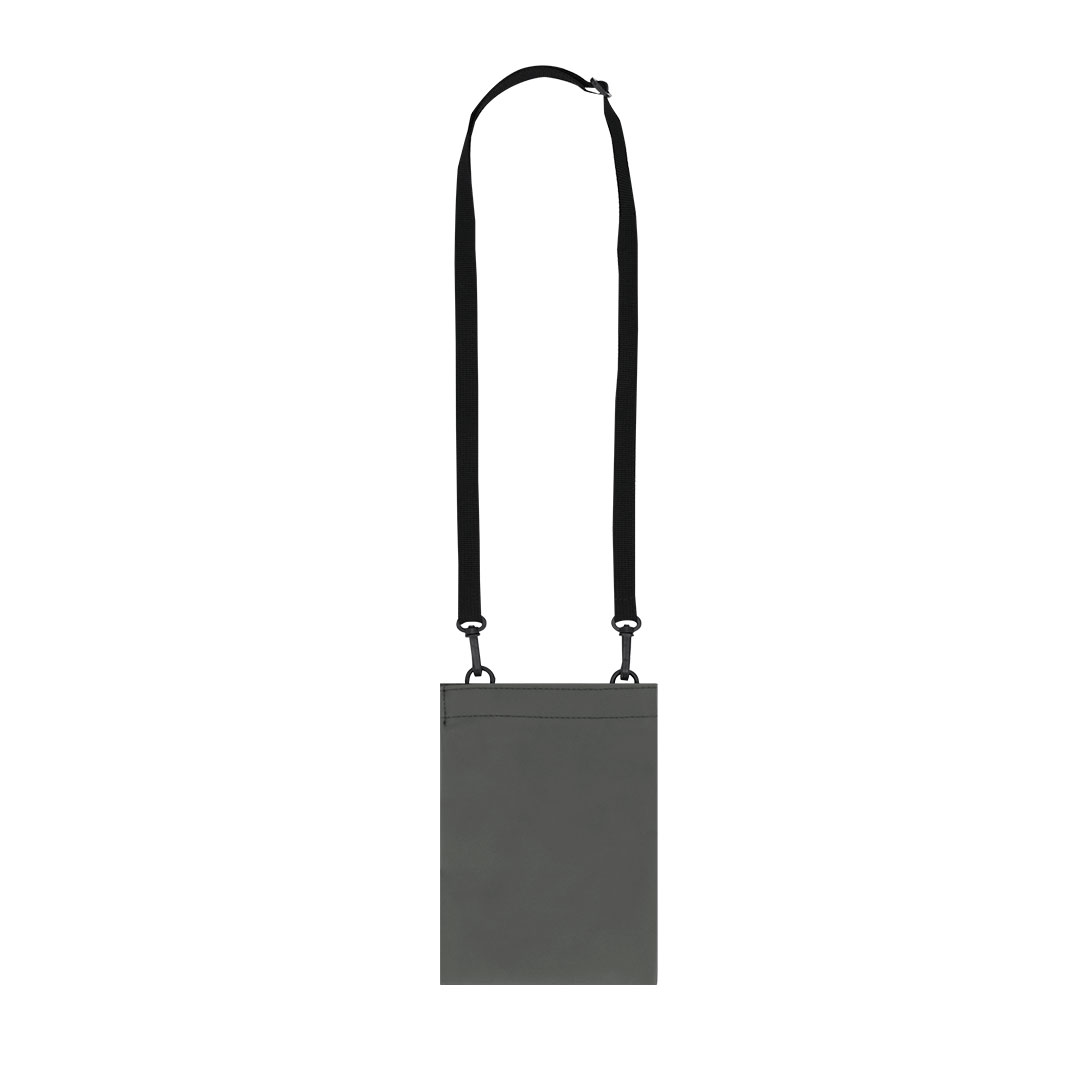 Pouch made from soft PU. Main compartment with velcro closure and wide entry with expandable gusset. Includes adjustable flat strap with double swivel hook fasteners.