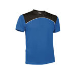 Light tricolor t-shirt, specially prepared for sports due to its construction in breathable technical fabric, which facilitates the evacuation of body perspiration. Curved piping on the front and back, short sleeves, round neck and double stitching on the hem, neck and sleeves. Designed in strong colors combined with black and a vivid white. Ideal for dressing sports teams and groups. 100% Polyester. 145gr