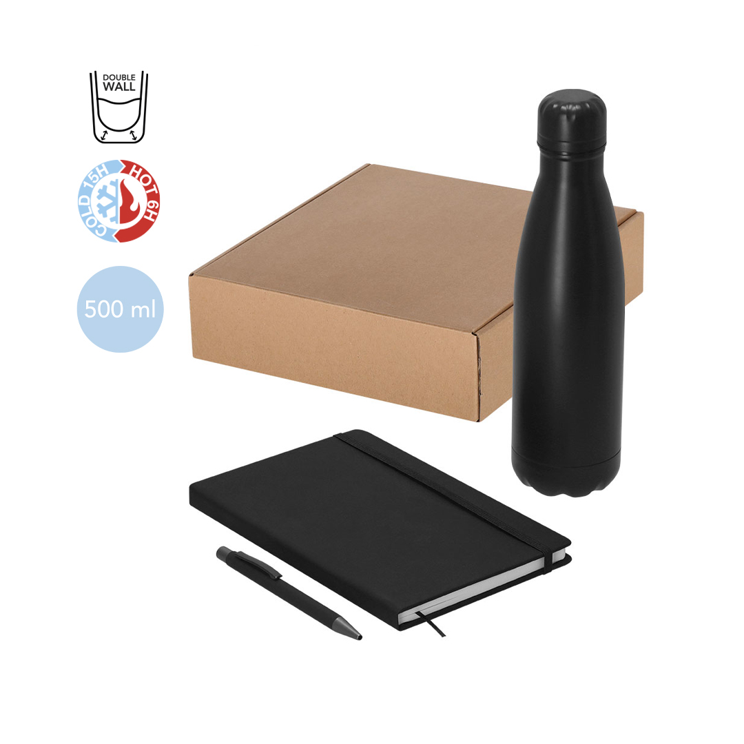 Insulated Bottle Stainless Steel, 500 ml. PU notebook, hard cover, 80 sheets. Pen Aluminium, Jumbo Refill