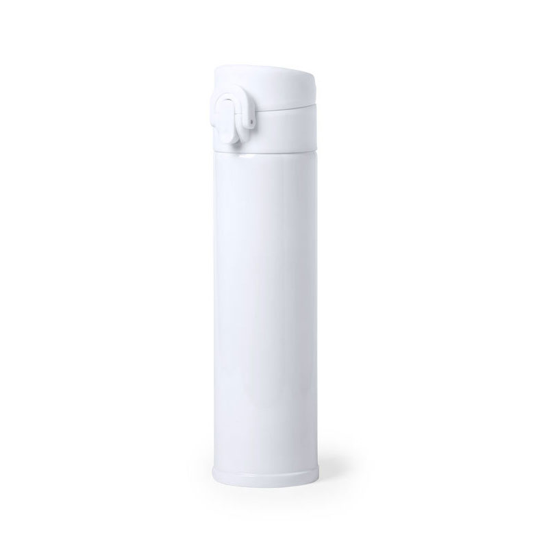 330 ml thermo in stainless steel. Double wall for a better and longer preservation of liquid’s temperature, with security lock and including an easy, button opening mechanism. Especially manufactured for sublimation printing and presented in an attractive design box