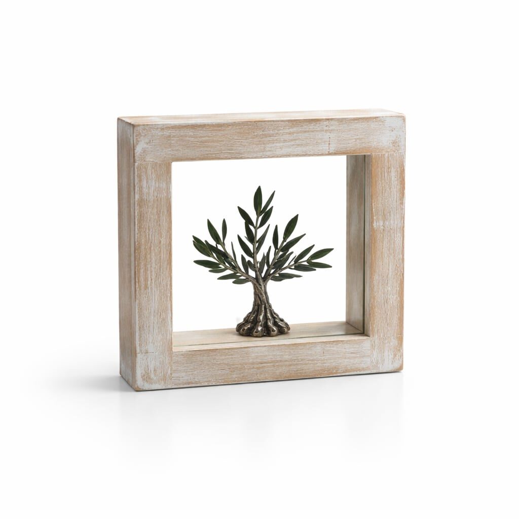 A HANDMADE OLIVE TREE WHICH STANDS IN AN ELEGANT WOODEN FRAME 28cm*28cm. THE PRODUCT CAN BE PERSONALISED WITH A PRINTED PLATE.