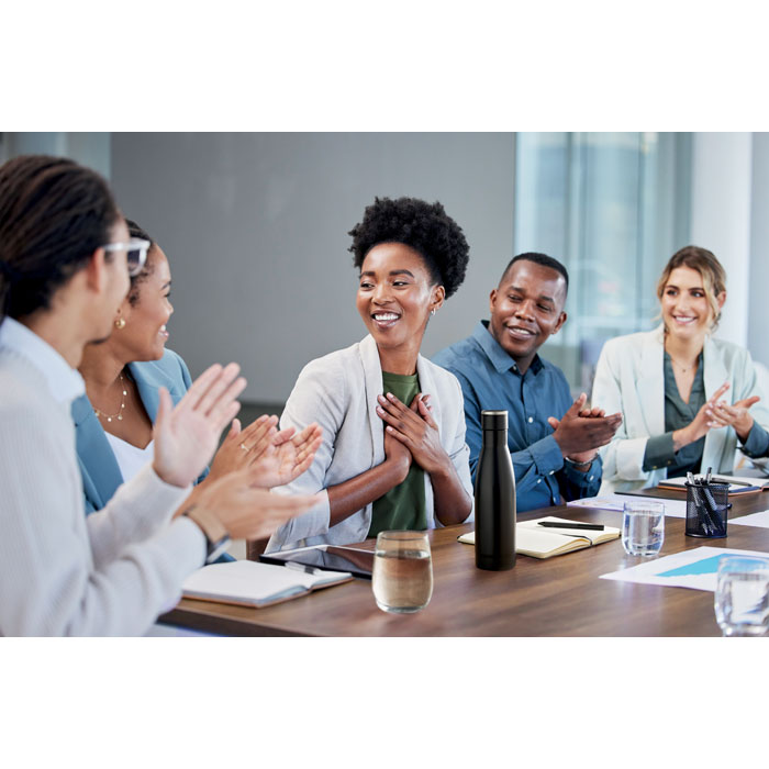 Luxury 3-piece gift set. It includes an A5 notebook with a hard RPET cover. Casebound. 160 lined recycled paper pages (80 sheets). Matching elastic closure strap and ribbon page-marker, and pen holder. Matching twist ball pen. Double-wall stainless steel vacuum-insulated bottle. Capacity: 500 ml. Presented in a luxury gift box. FSC®-certified | FSC MIX CREDIT, P7.1, FSC-C213206
