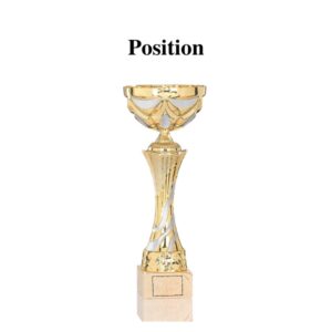SPORTS TROPHY WITH GOLD & SILVER DETAILS. 35CM IDEAL FOR FIRST-PLACE WINNERS. MOUNTED ON A HIGH-QUALITY MARBLE BASE.