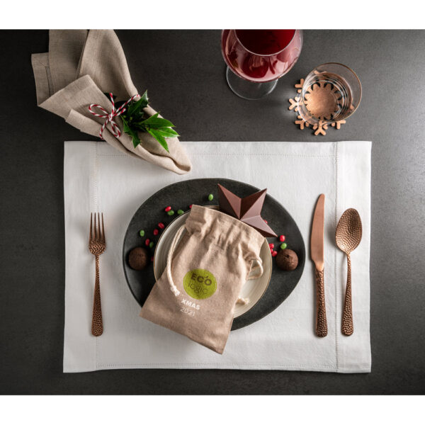Recycled cotton gift bag (140 g/m²) and cotton cord handles. Reusable bag ideal for small gifts. 140 x 200 mm.