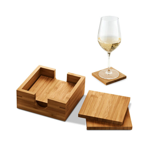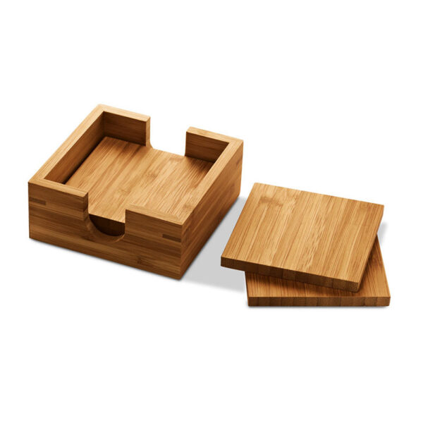 ECOSIP BAMBOO COASTER SET – 4-PIECE NATURAL DRINK COASTERS IN KRAFT GIFT BOX