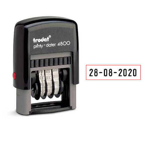 INK AVAILABILITY: BLUE, BLACK, RED, GREEN. TRODAT DATE STAMP. DATE SIZE 3MM, DD MMM YYYY ( 01 JAN 2019). 2 * 0.3 CM.